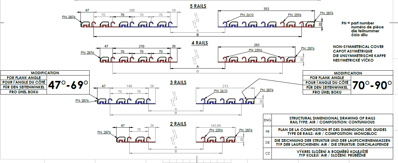 Förlängningsskenor/ Extraskenor v01 Air A Albixon finns i längderna 2,5m / 2,8m / 3,23m