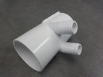 Fördelare/ grenrör. Inv mått 2" / 60,3mm på båda sidorna för slang eller rör. 2 st. 3/4inch =20mm ( lämplig för transparant slang 19mm)
