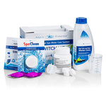 Byteskittet innehåller tillräckligt med produkter för att underhålla ditt spabad under ungefär sex veckor. Dessutom innehåller det en tablett AquaFinesse SpaClean som rengör spabadet före, samt ett testpaket som innehåller två AquaFinesse-filterrengöringstabletter som du kan testa.