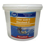 Granulat som desinfektionsmedel för underhåll under hela badsäsongen och drift för såväl pool som spabad. Särskilt lämpligt för engångsbehandling alltså chockklorering av kraftigt förorenade pooler eller spabad. Tar död på alger och virus. Vid lösning i poolvatten sker kraftig ökning av klorkoncentration som tar död på de flesta vanliga virus och algarter.