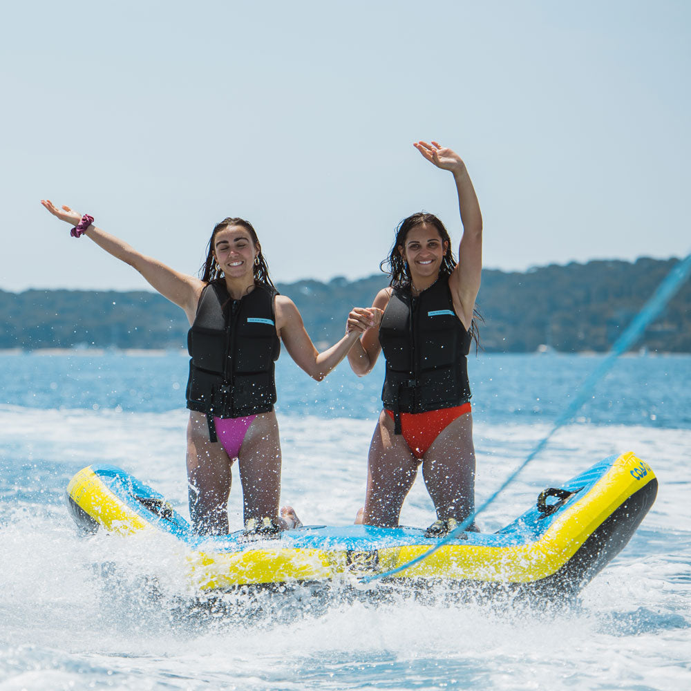 Coasto Beagle för två personer är en stabil, slitstark och rolig bogserbar badring som passar perfekt för sommarens alla vattenäventyr bakom båt.