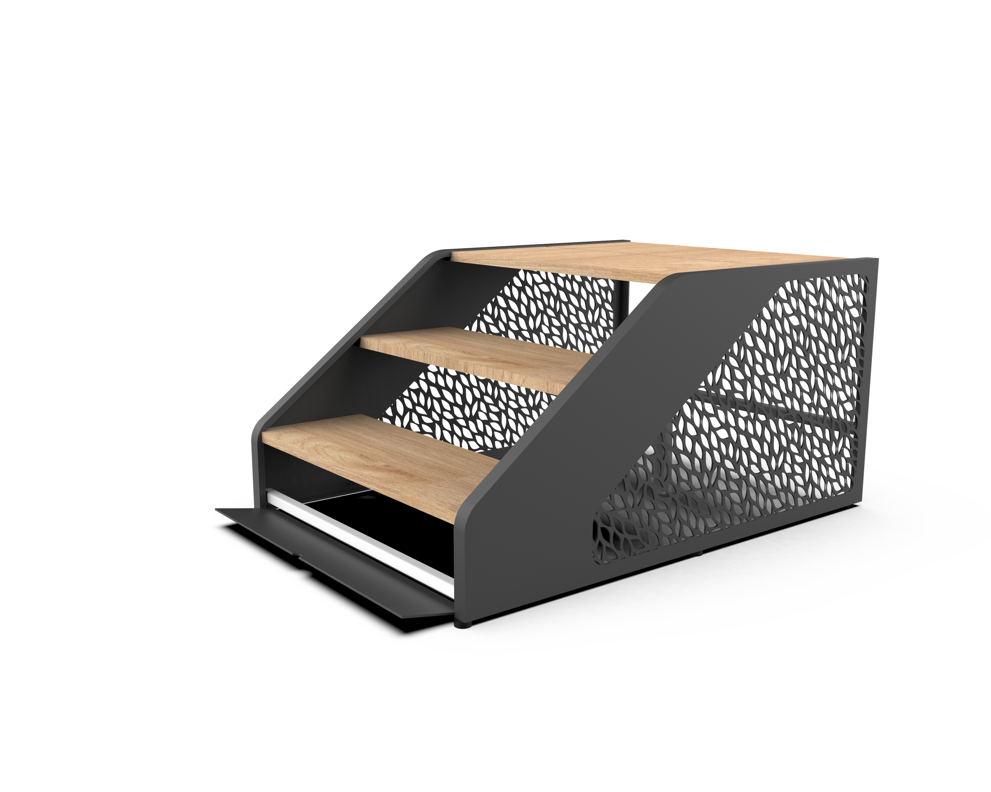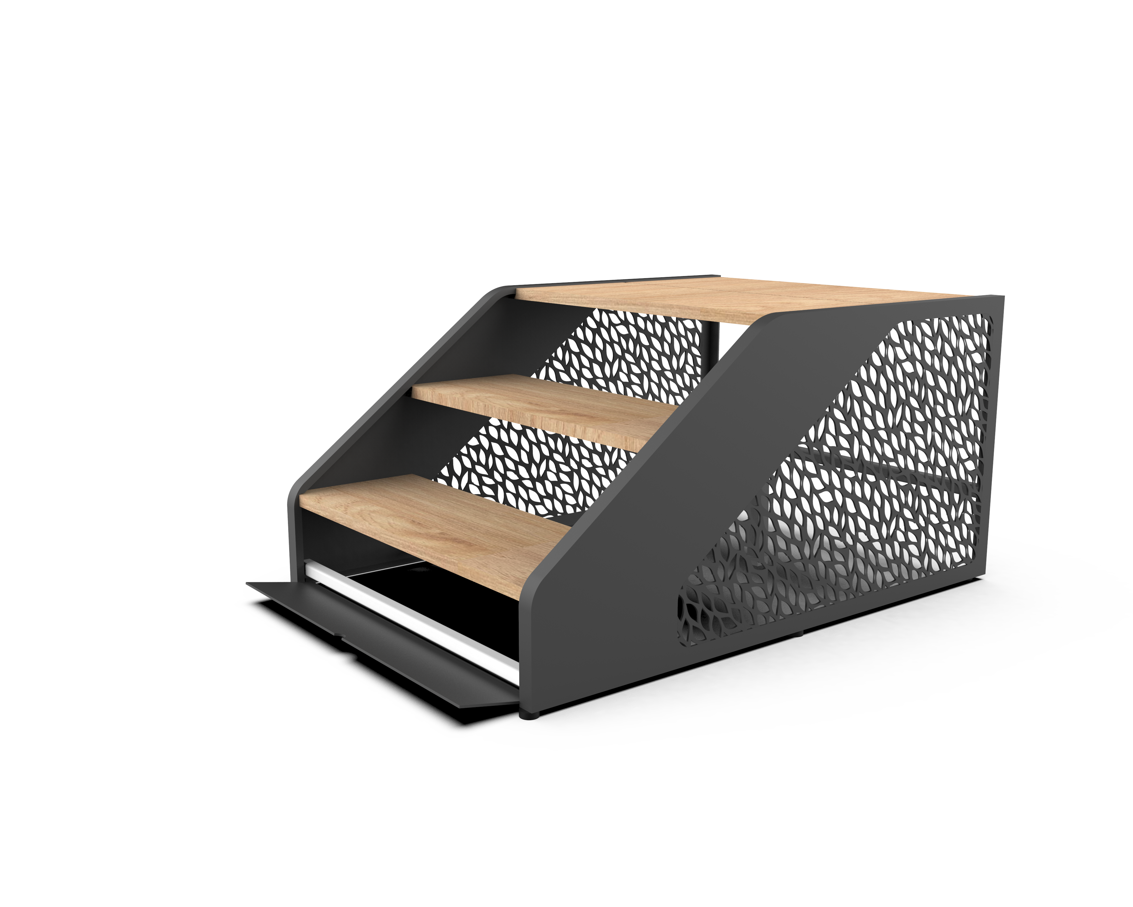 - Smart förvaring – praktiskt skofack under steget