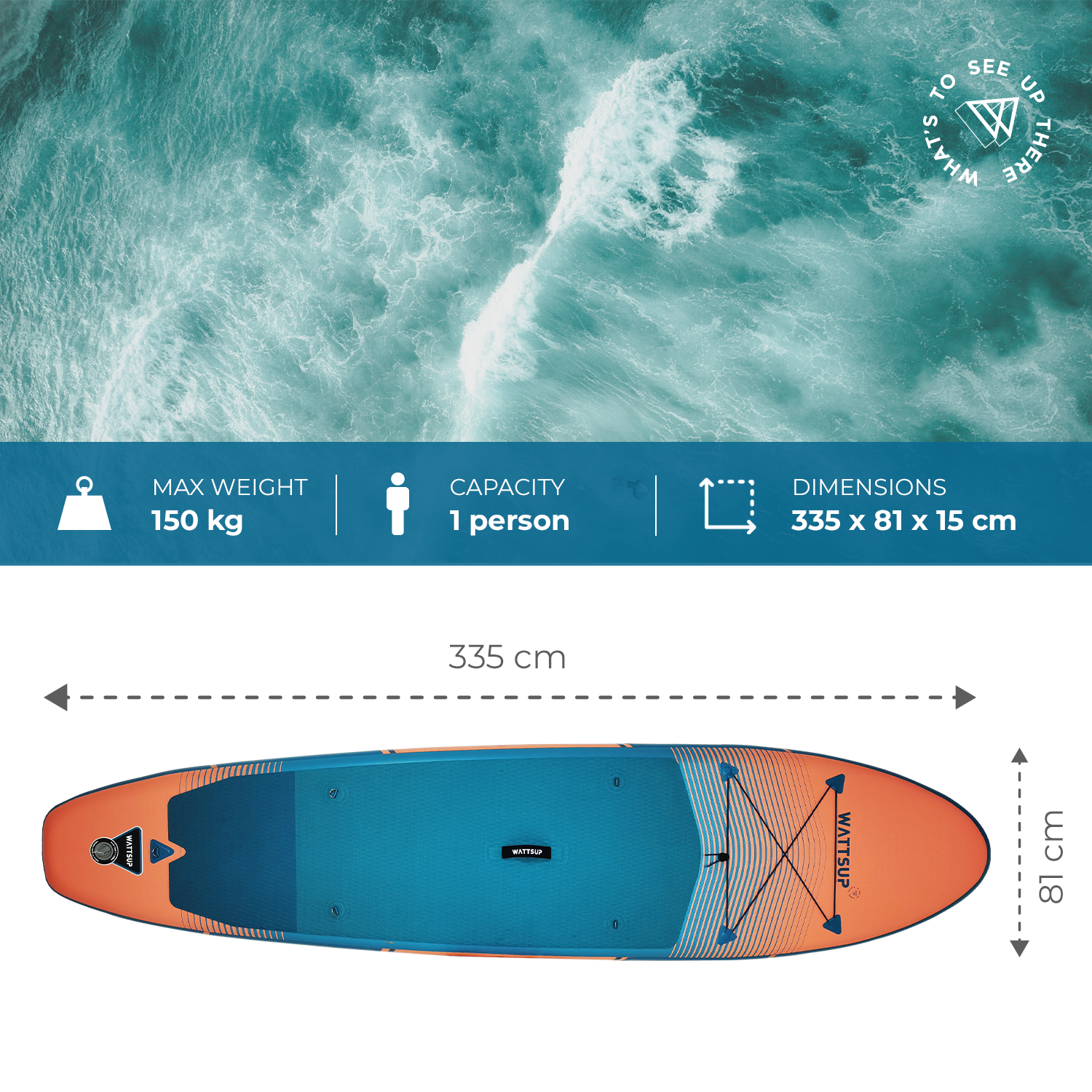 WattSUP F11 är en uppblåsbar SUP designad för stabilitet, glid och mångsidighet. Med sina 335 cm i längd är den perfekt för längre turer, lugn paddling och lättare vågor. Passar både nybörjare och mer erfarna paddlare.