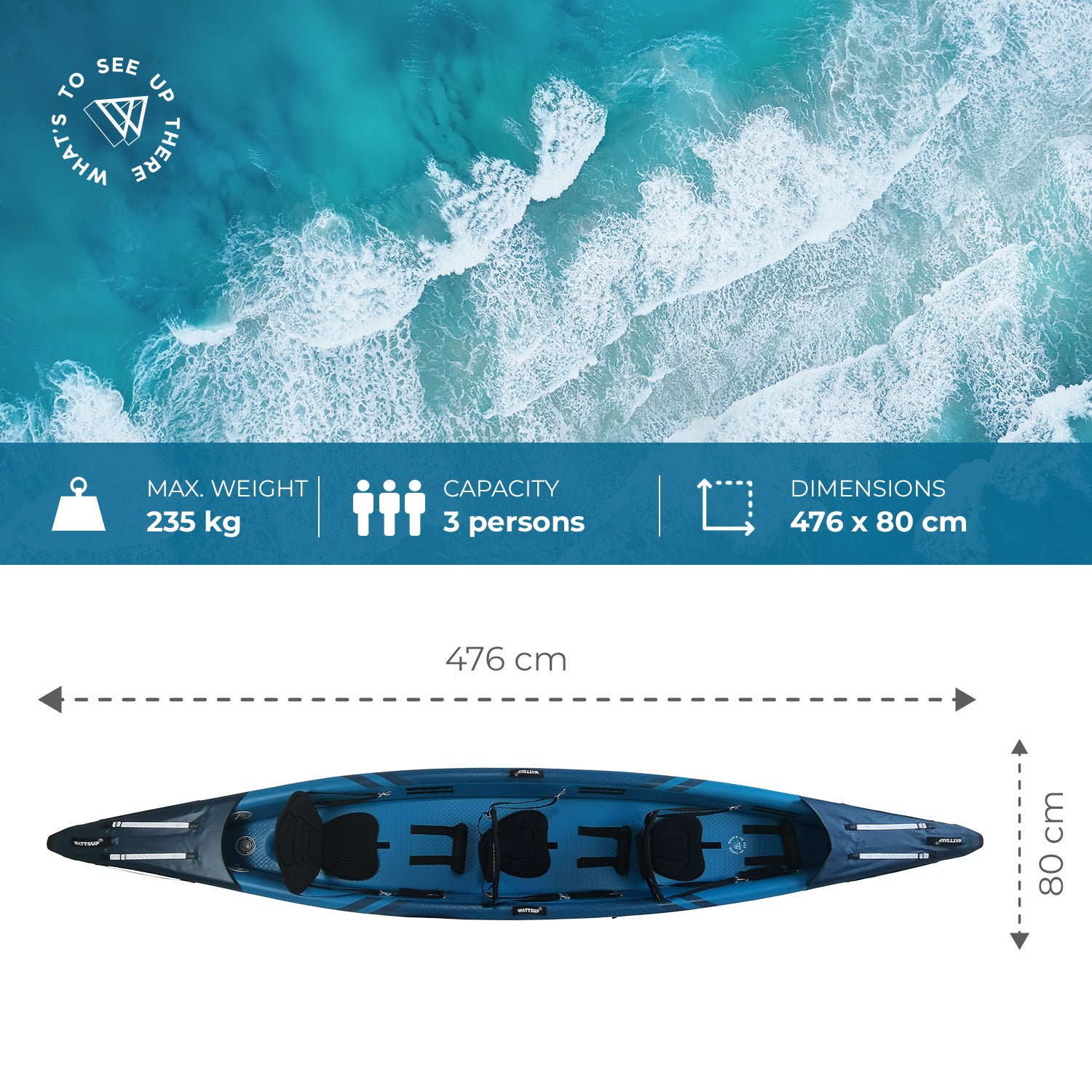 WattSUP Torpedo 3P är en högpresterande uppblåsbar kajak i full Dropstitch-konstruktion. Med en längd på 476 cm och V-formad design ger den en glidkänsla som närmar sig en rigid kajak – samtidigt som den är lätt att transportera och förvara.
