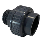 PVC Union 50mm-2" med limanslutning invändigt 50mm i ena sidan samt utvändig 2” gänga på andra sidan.