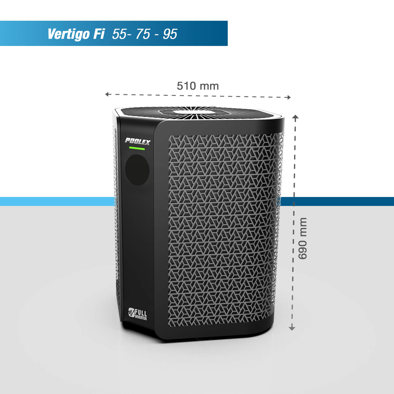 Poolex Vertigo Fi är en premiumvärmepump som kombinerar hög prestanda, energieffektiv Full Inverter-teknik och modern vertikal design. Serien är utvecklad för poolägare som vill ha stabil temperatur, lägre energiförbrukning och tyst drift – även under längre säsong.